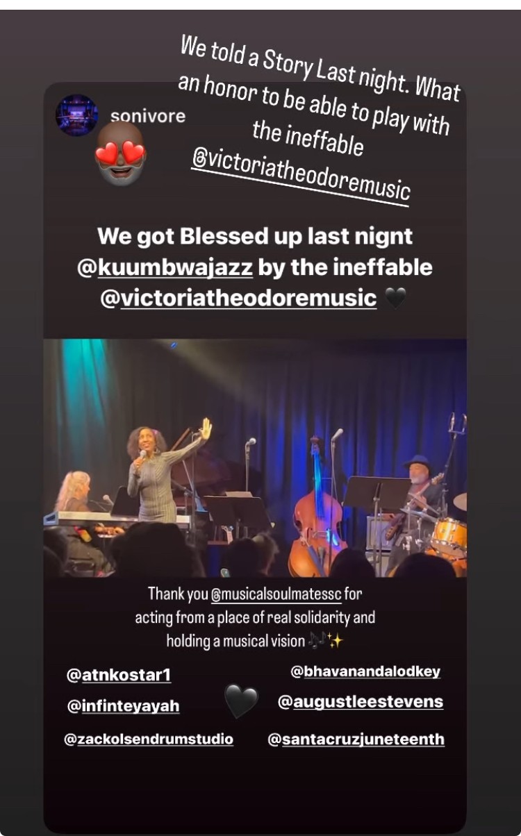 After George Floyd, Kate was moved to ask Juneteenth Santa Cruz if she could take the Juneteenth stage and contribute Freedom Songs written by Black artists and to support Black singers in singing them. An earier version of the Musical Soulmates Performers Collaborative, this array of Santa Cruz’ finest artists was called The Juneteenth Collective…